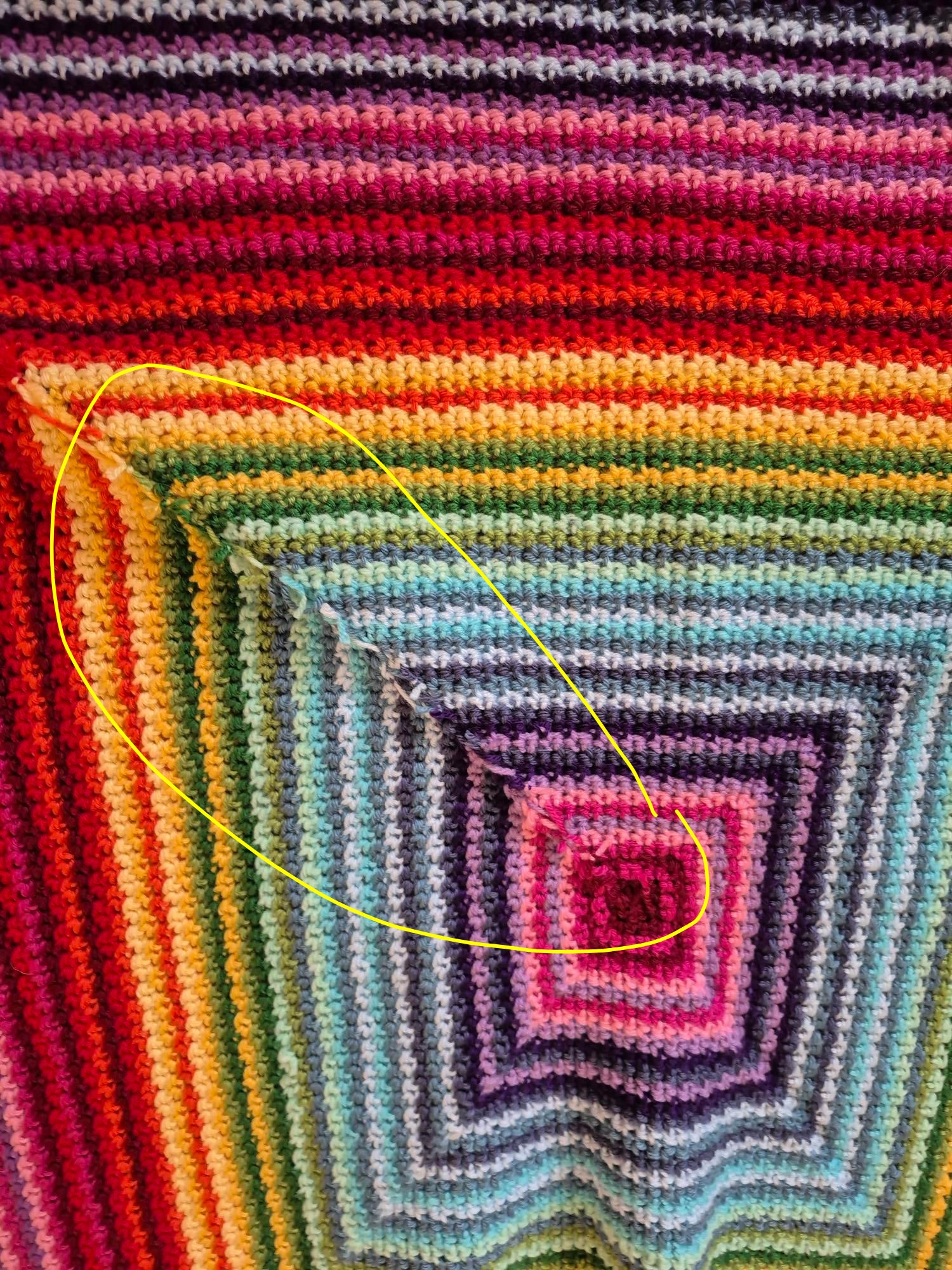 *note there is one seam with knots on the back, where color changes occur (see photo). Knots are more stable than weaving in ends, so I opted for that.